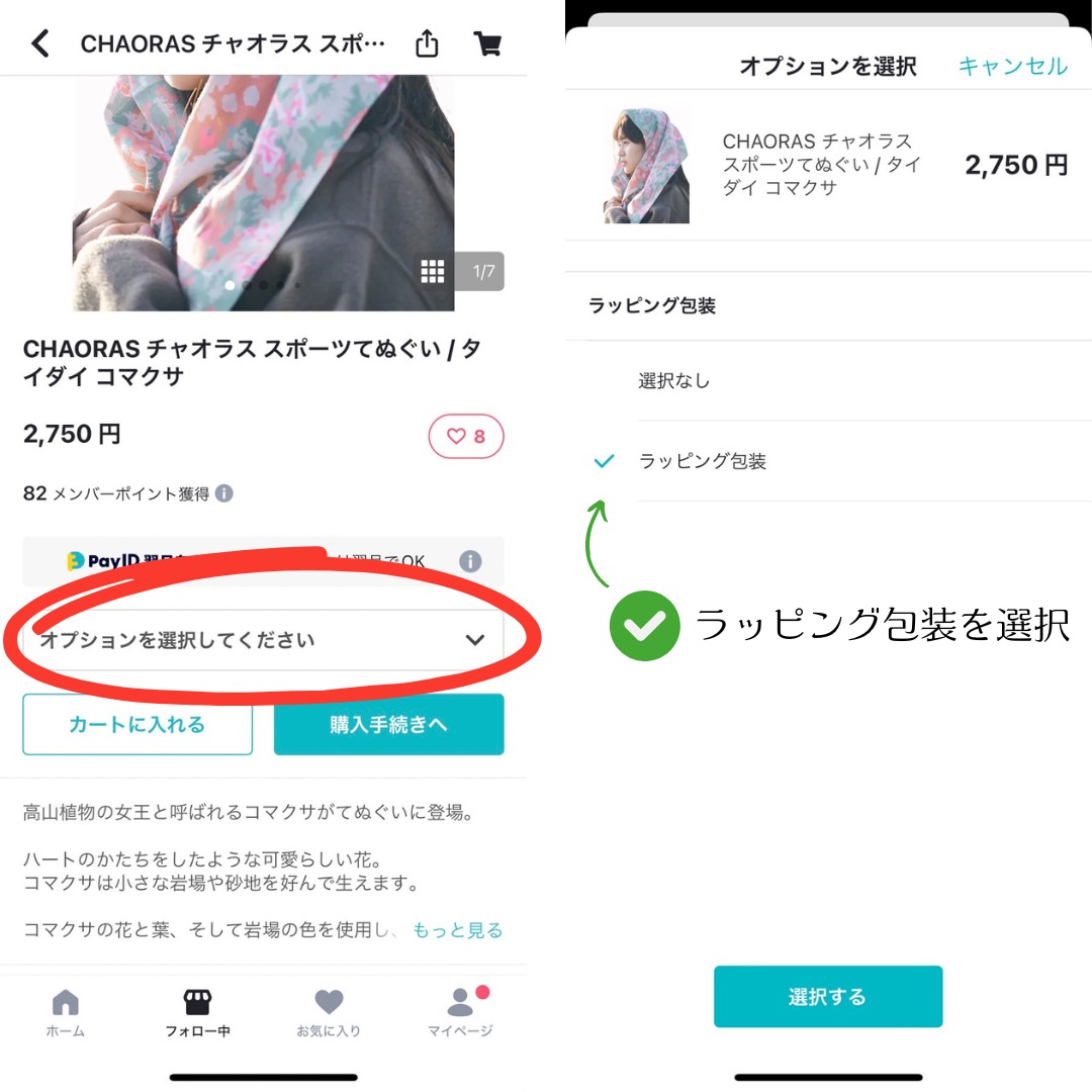 ②「ラッピング包装」を選択してください。