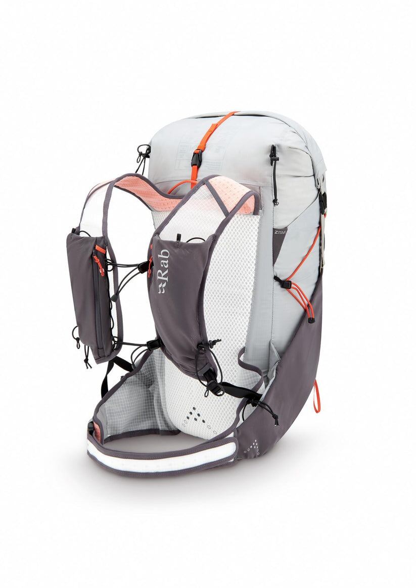ハーネスはRabのランニングパックに採用されている超薄型モノメッシュ。
