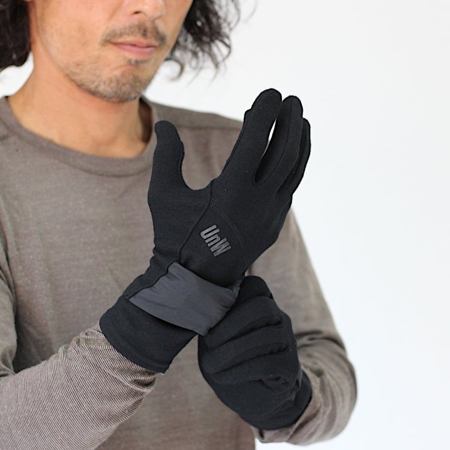 adaptがトレイルランニング用でアクティブなシーンに適しているのに対してbeyondはグローブ全体にメリノウール、防風のための収納式フードを採用したより保温性を確保したモデルとなります。