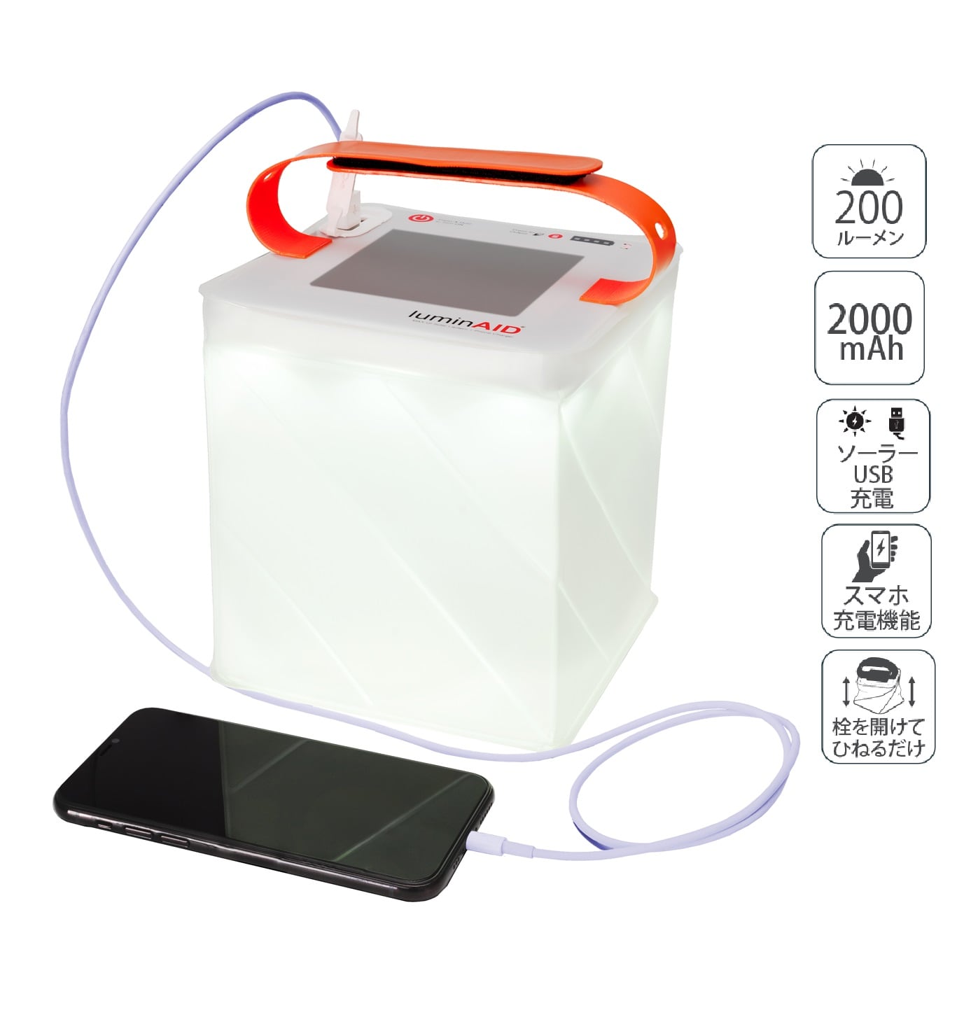 モバイルバッテリー機能を搭載し、照明との1台2役に。アウトドアや防災停電対策に最適です。
