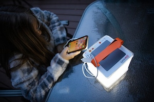 モバイルバッテリー機能を搭載し、照明との1台2役に。アウトドアや防災停電対策に最適です。