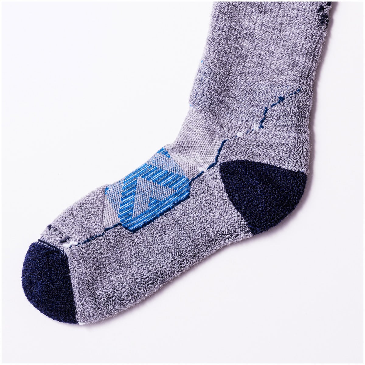 フィット感に優れ、運動量の多いアクティビティーにも対応するソックス。甲部分にはズレを抑える×印のエラスチックバンドを配備し、通気性を高めるためにメッシュゾーンを設けることでさらに快適性が向上しました。クッションは全体に装備し、つま先とかかとが特に厚くなっています。4方向に伸びる生地はフィット感に優れ、毛玉も出来にくくなっています。つま先は靴擦れを防ぐシームレス仕様。スマートウールの技術を詰め込んだ一足です。