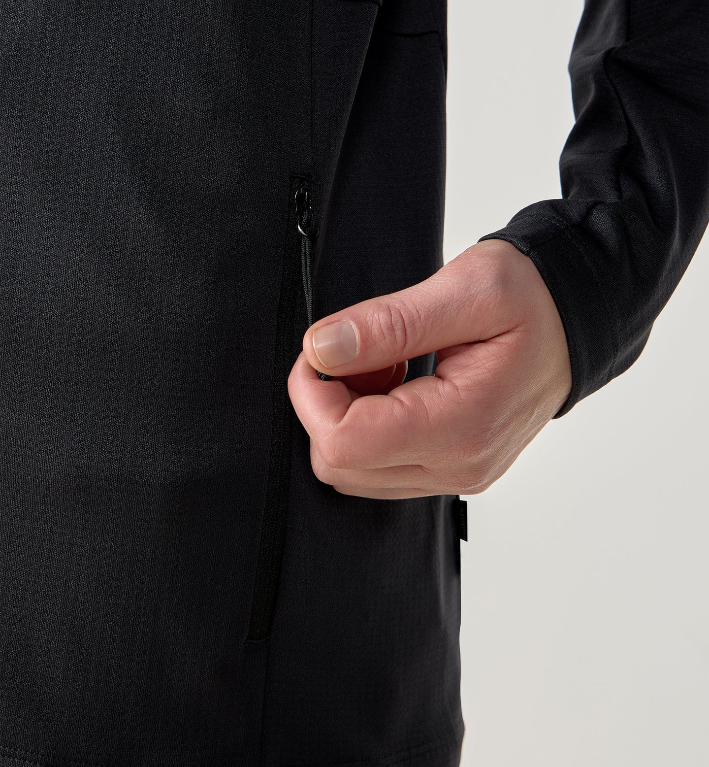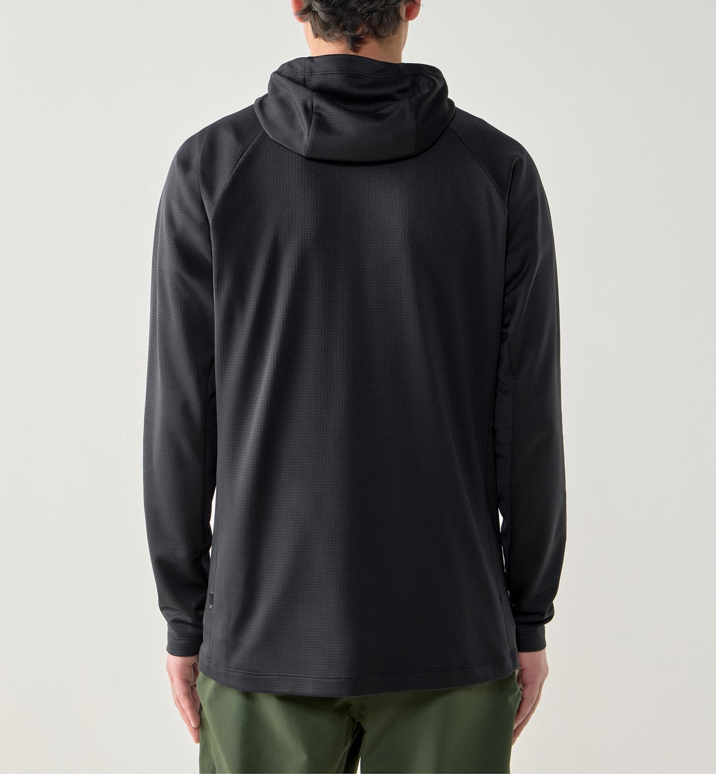 KORP MID HOOD は、ハイパルス用のアクティビティに適したスポーティなミッドレイヤーです。