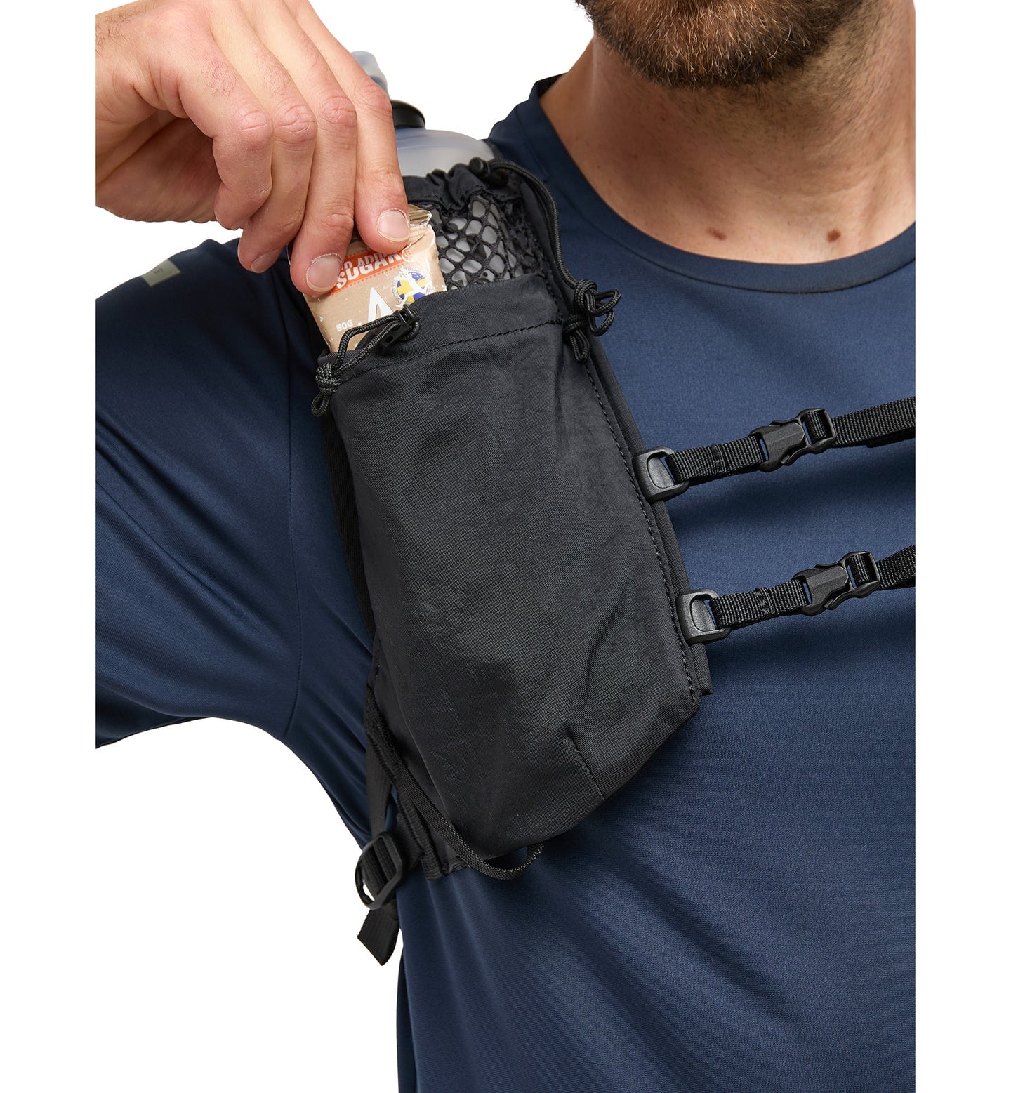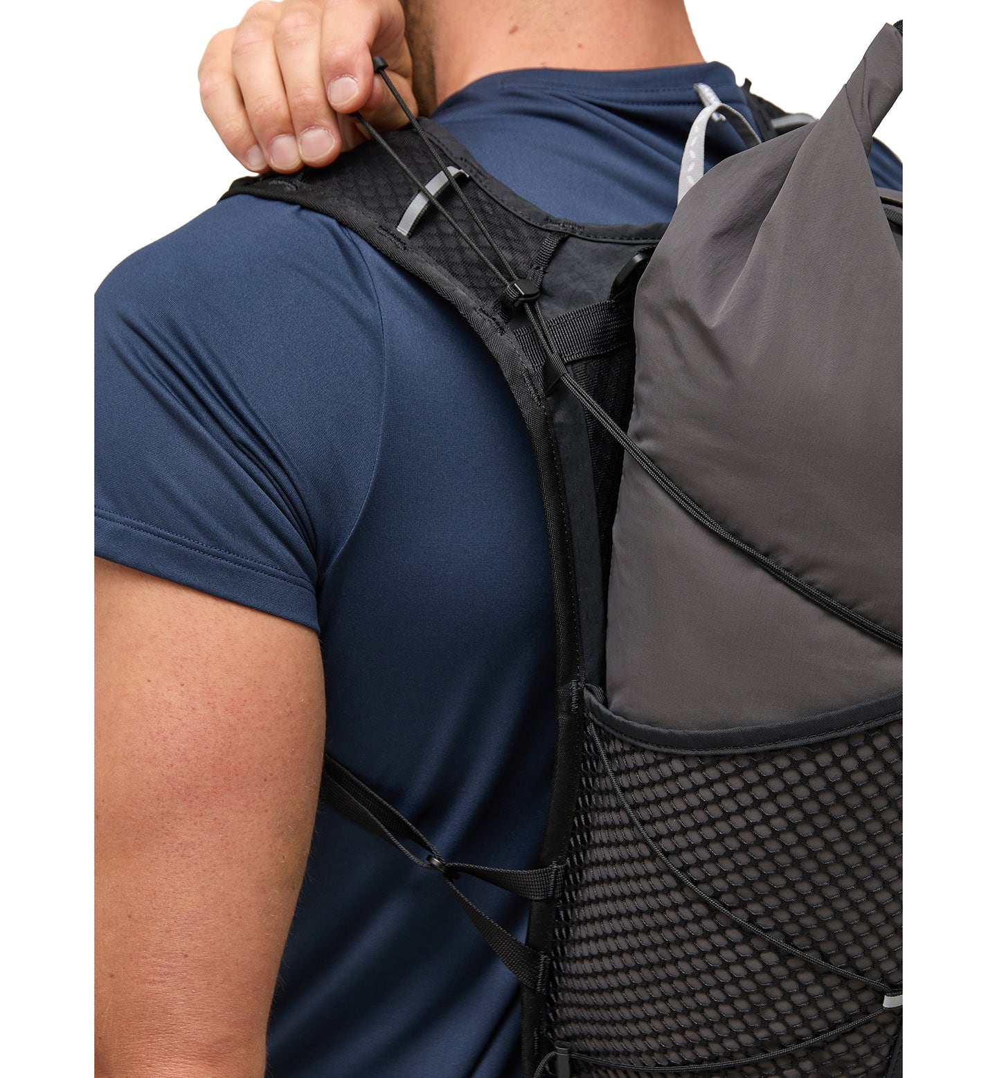 ショルダーハーネスにはボトルホルダーを2つ備えた、軽快で機能的なパックです。