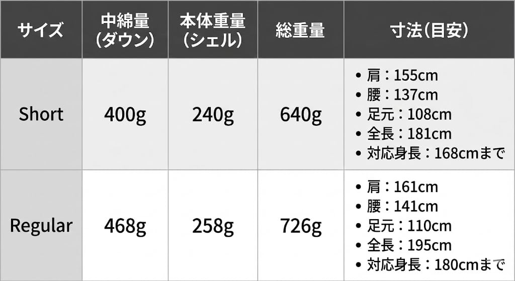 約726gの軽量設計で、−2℃から10℃の快適温度域をカバー。コンパクトに収納でき、持ち運びにも便利です。ULハイクや6000m級の山岳登山に最適な性能を備えています。