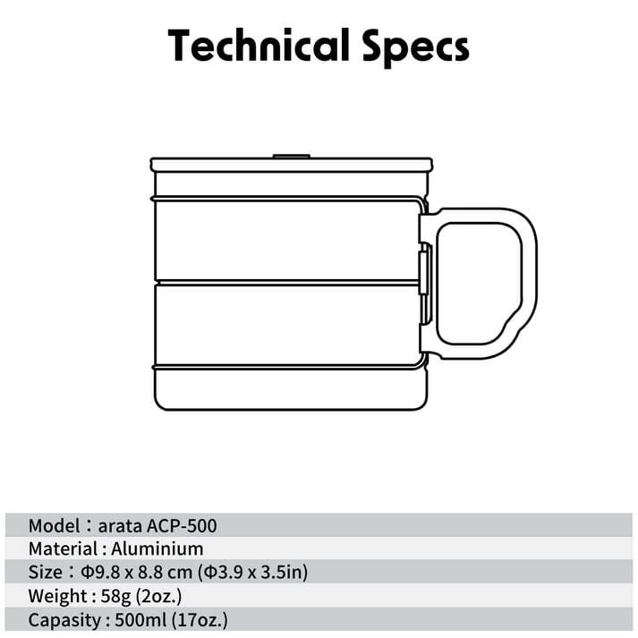 ACP-500は熱伝導率の高いアルミ製であり、チタンよりも早く沸騰するので消費燃料を低減します。