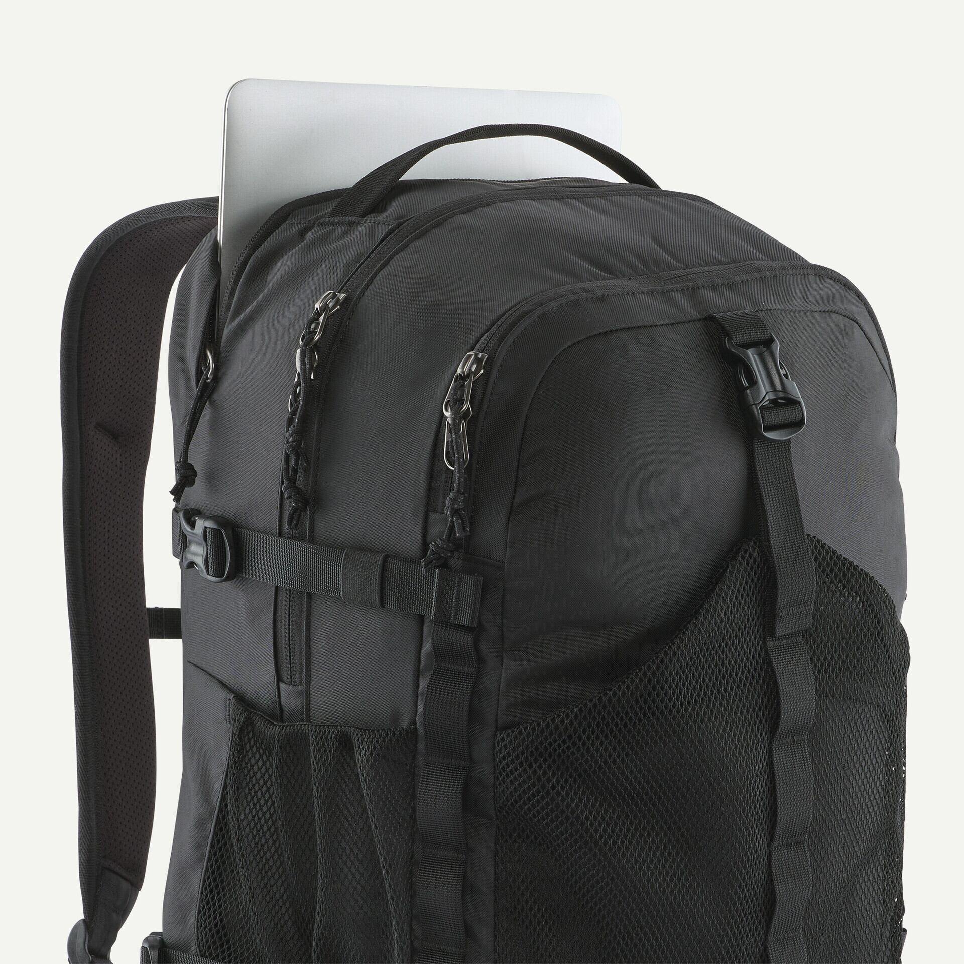 日常生活ではもちろん長年の旅の酷使にも耐え、パタゴニアの定番シリーズとなったのがレフュジオ・デイパック。容量30リットル版は普段の持ち物に加え、履き替えのシューズが必要なときなどにも対応するスペースを提供。100%リサイクル素材はPFASを意図的に添加せずに製造されたDWR(耐久性撥水)加工済みで、ラップトップ用スリーブ、給水パック対応のデザイン、ウォーターボトル用ポケットなど不可欠なものも完備。フェアトレード・サーティファイドの工場で製造