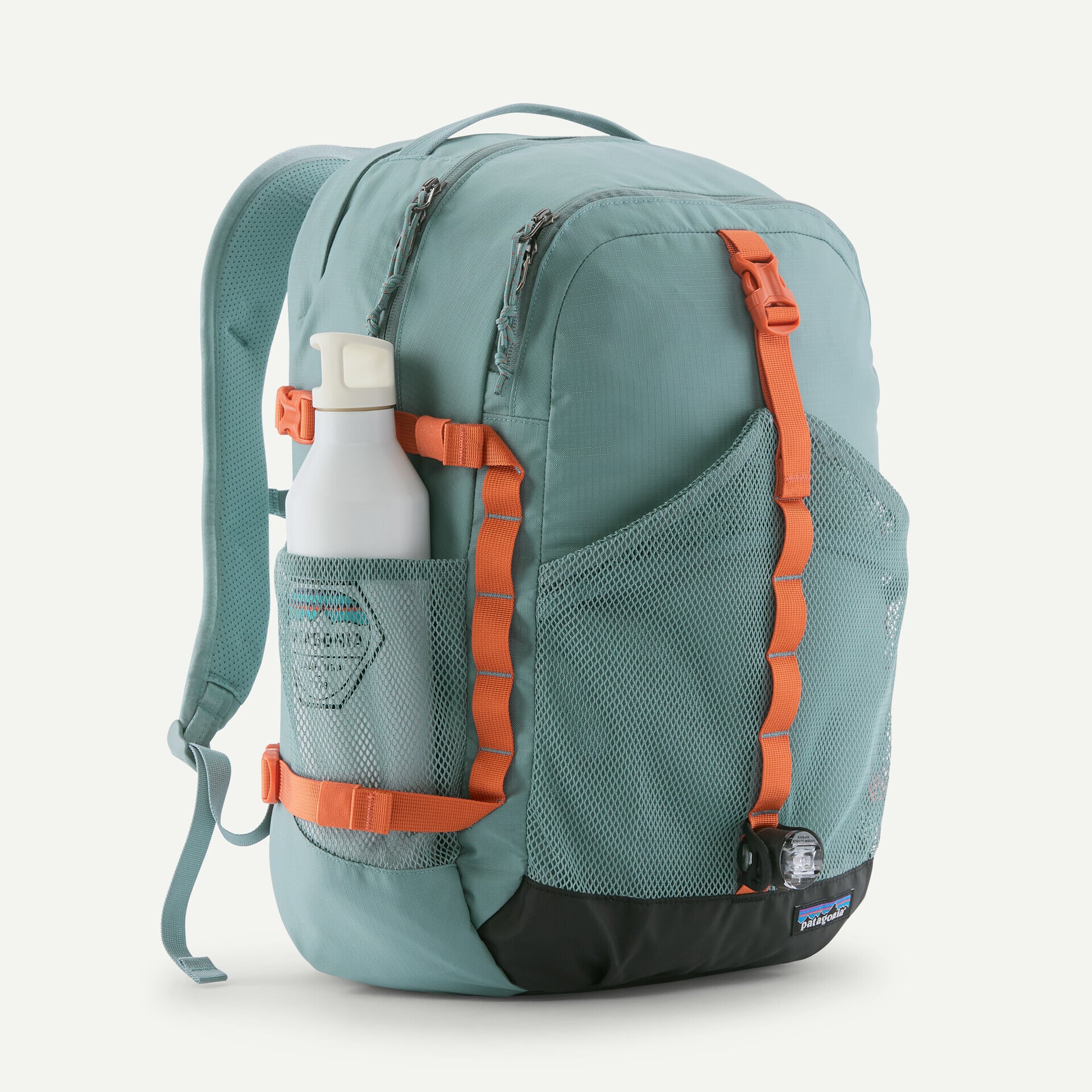 フロントのメッシュポケットはさらなる収納スペースを提供し、濡れたり汚れたりした物を分けて運ぶのにも便利。パックの下部にバイクライトを取り付けられるクリップ付き。両脇のウォーターボトル用ポケットは長年の酷使に耐えるよう補強済み