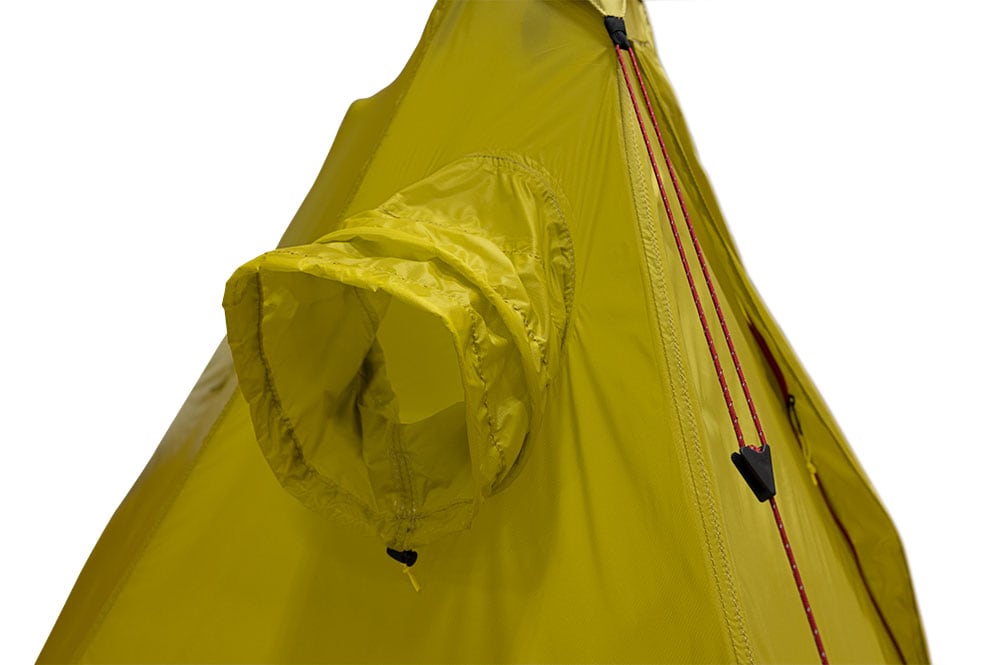 ベンチレーターにはオプションのモスキートネットが取り付け可能です。 各コーナーにはループが付いているので、ストックがなくても立木などを利用して設営することも可能です。