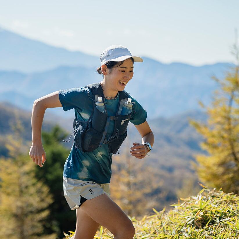 サイドアジャスターには6点式のバンジーコードを採用し、吸い付くようなホールド感と通気性を実現。ウエストにあるコードは片手で引けるので、ランニング中でも簡単に調整できます。