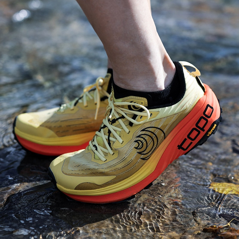 厚底ながら下りでもコントロールしやすく、Vibramメガグリップの安心感も相まって、幅広いトレイルで気持ちよく使えます。シリアスランナーはもちろん、クッション性重視の方にもおすすめです。