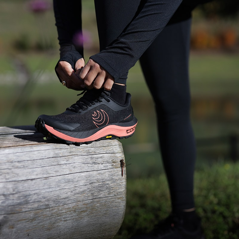 TOPOのトレイルラインの中でも、MTN RACERはクッション性・グリップ力・軽快さのまとまりが非常に優秀なモデルです。厚みはありつつも過剰すぎず、足さばきのしやすさがあるので、テクニカルなトレイルをしっかり走りたい方に相性のいい一足。