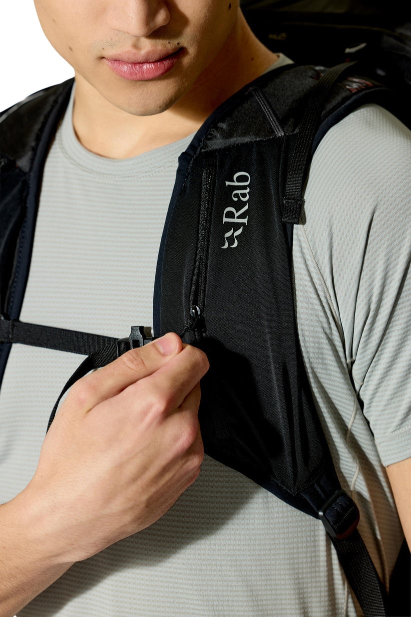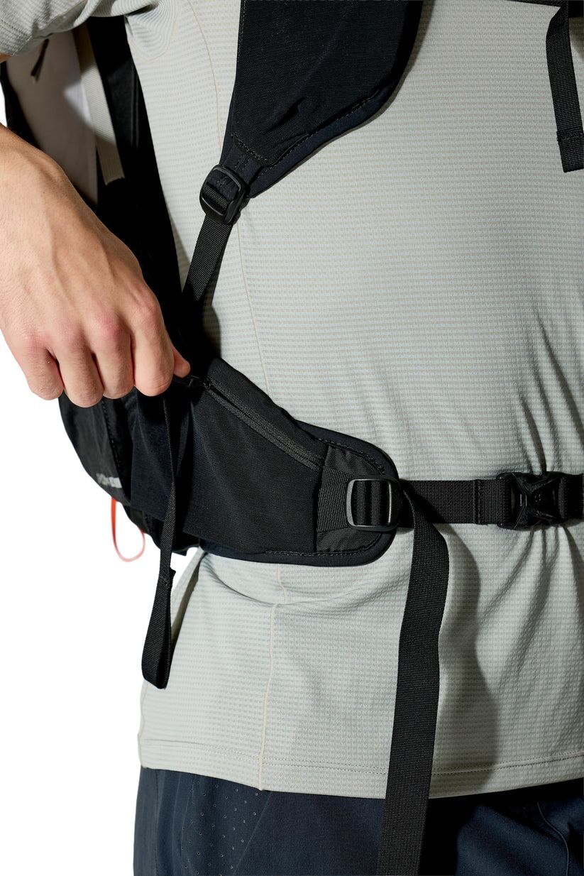 ・チェストストラップにソフトフラスクや小物を収納できるポケット付き