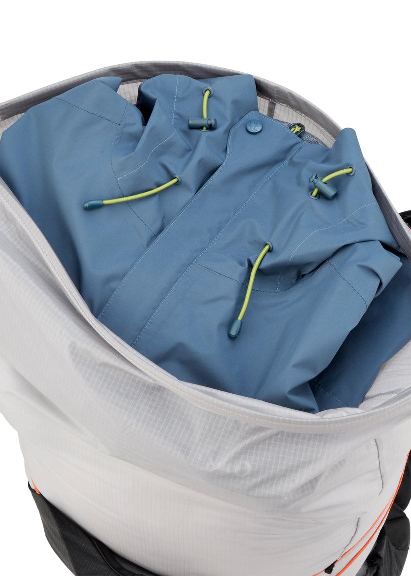 完全防水で通気性に優れた40Lのバックパック。軽量な山行において快適さを損なわず、大幅な軽量化を実現。