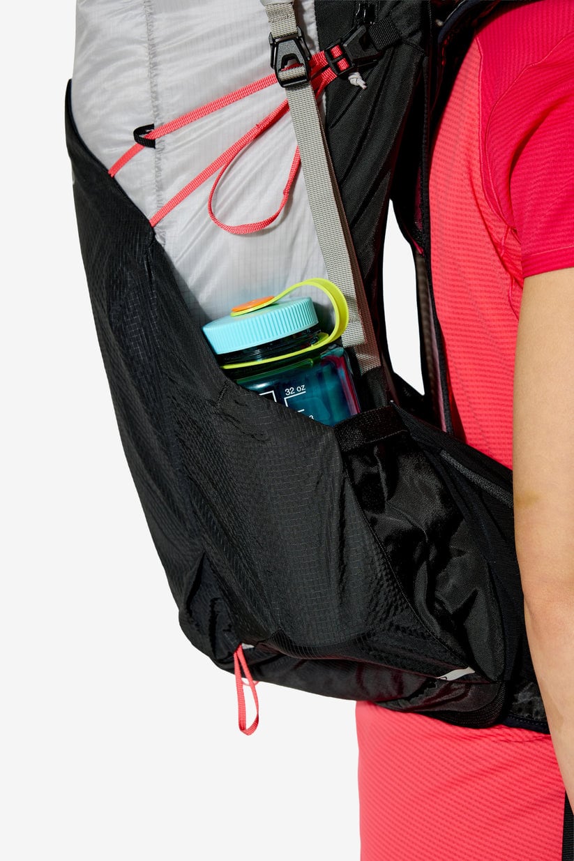 ・両サイドのスタッシュポケットには1Lのウォーターボトルを収納可能