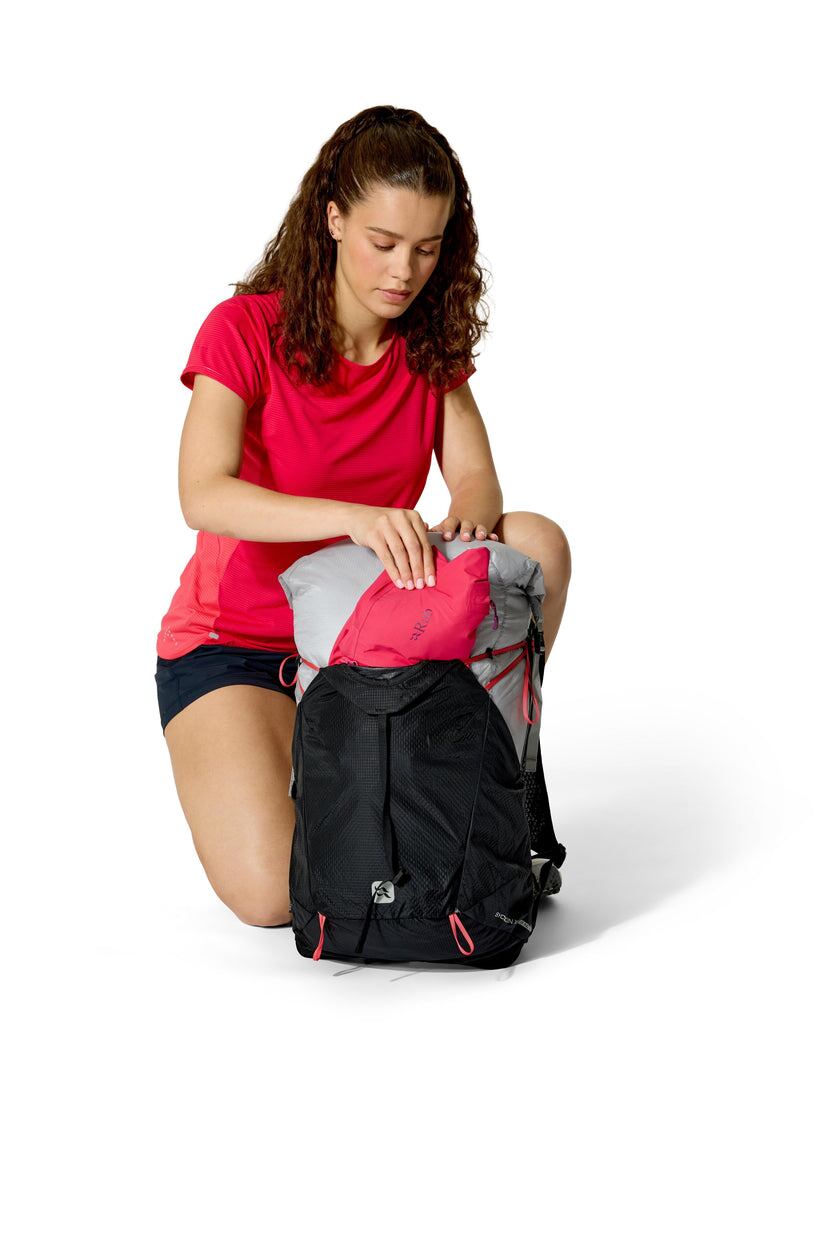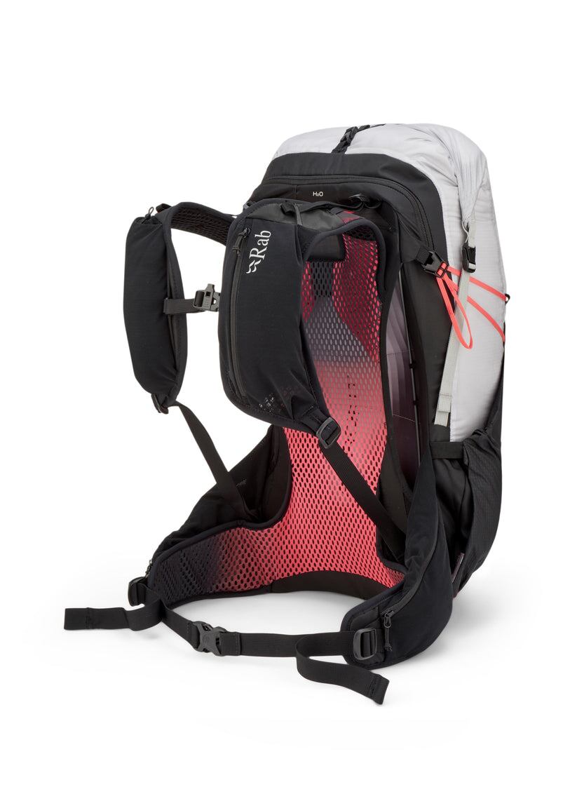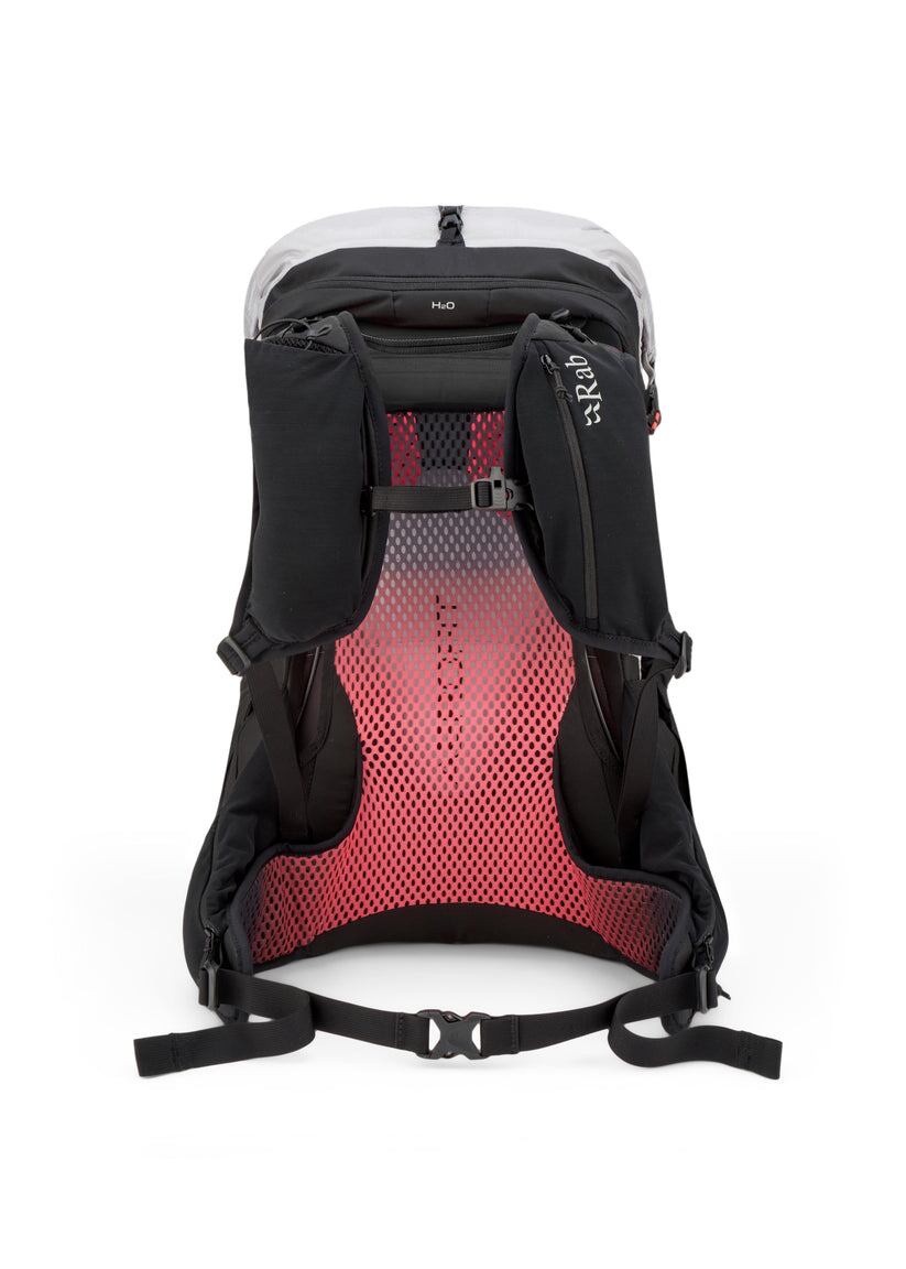 完全防水で通気性に優れた30Lのバックパック。軽量なマウンテンミッションにおいて、快適さを犠牲にすることなく重量を大幅にカットします。