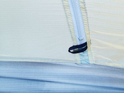 素材レベルでの見直しを行った結果、アライテントとしては初めて薄手布地をグランドシートにも採用しました。(薄手のグランドシート布地の保護のためにSLドームでは「専用アンダーシート」が付属されています)