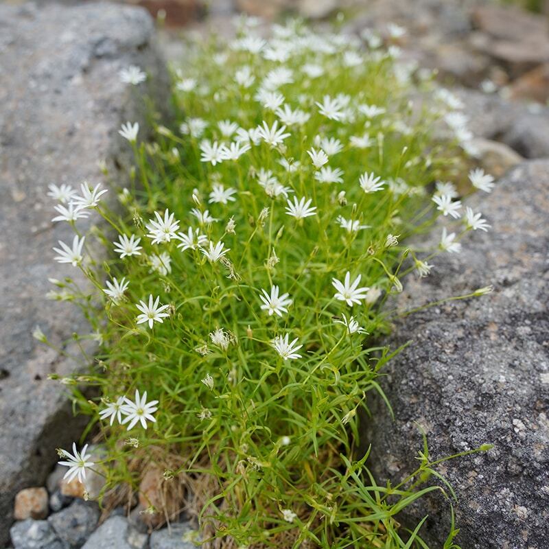 山地・高地で生育するマツムシソウとイワツメクサをモチーフにした1枚。