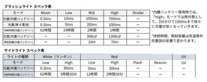 この「併用機能」と「自動切替機能」によって、急なバッテリー切れを回避でき、Aurora A5 / A7以上の照射時間が実現可能になりました。充電することが出来ない連泊のロングトレイルや、防災時など様々なシチュエーションで安心して使う事が出来ます。