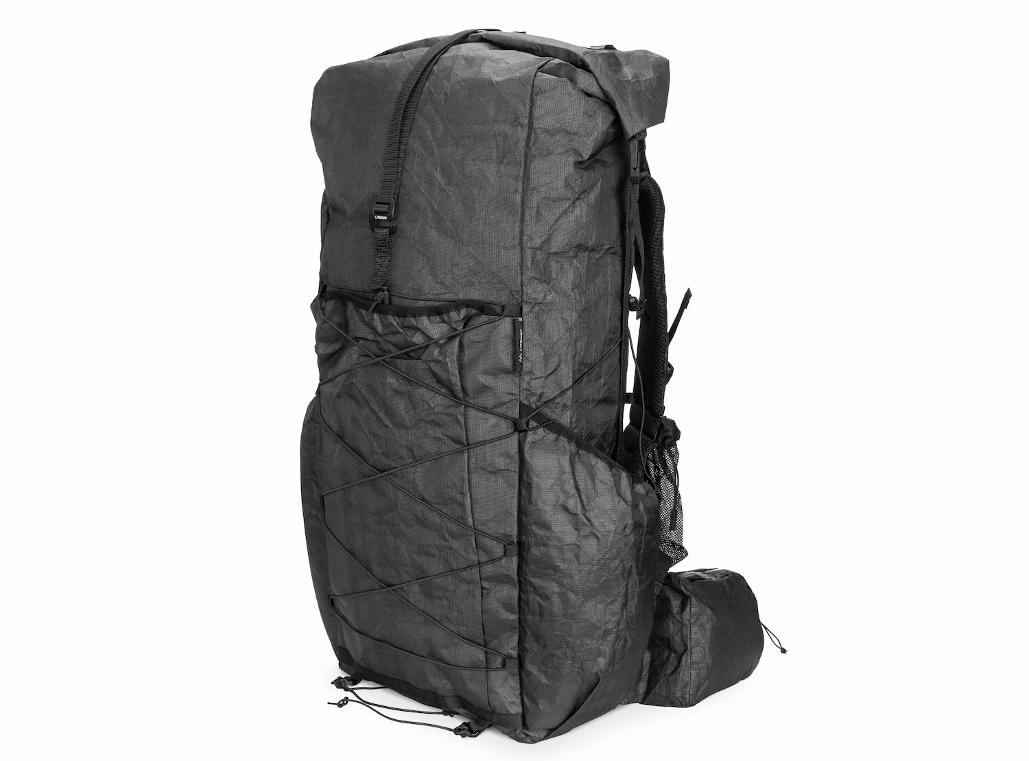 BIGGIE PACK ULTRAのデザインはとてもシンプルで、美しく無駄がなく、容量45Lのフレームレスバックパックです。基本デザインは「ELEMENTUM PACK」を踏襲し、各所に補強を施した作りになっていますが、大きな違いが2点あります。