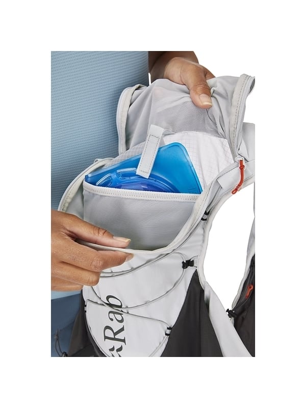 12Lの軽量なマウンテンランニングベストです。大きなジッパー付きバックコンパートメントは長距離のランニングに必要な装備の収納に最適です。