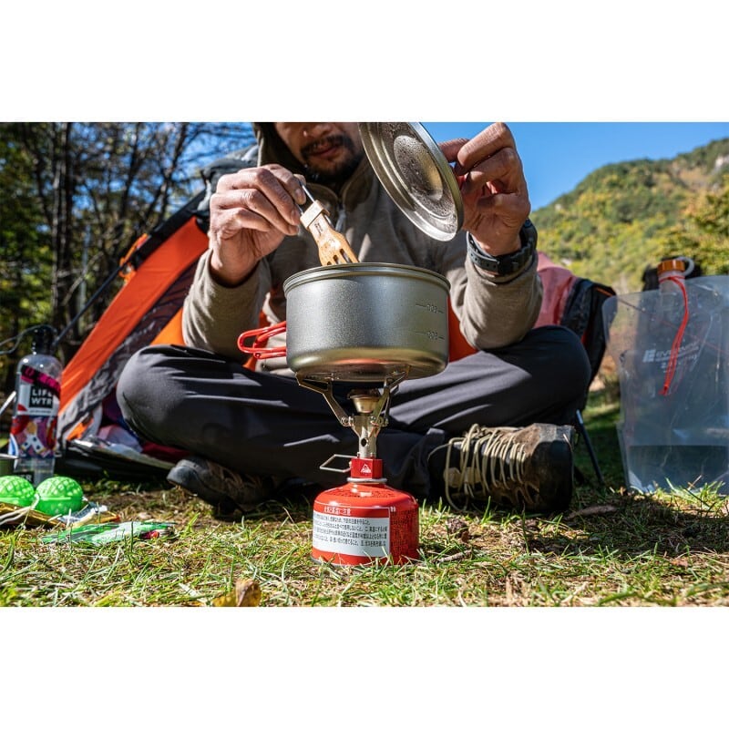 110サイズのガスカートリッジと小型ガスストーブが入り2人分のカップ麺のお湯が沸かせます。