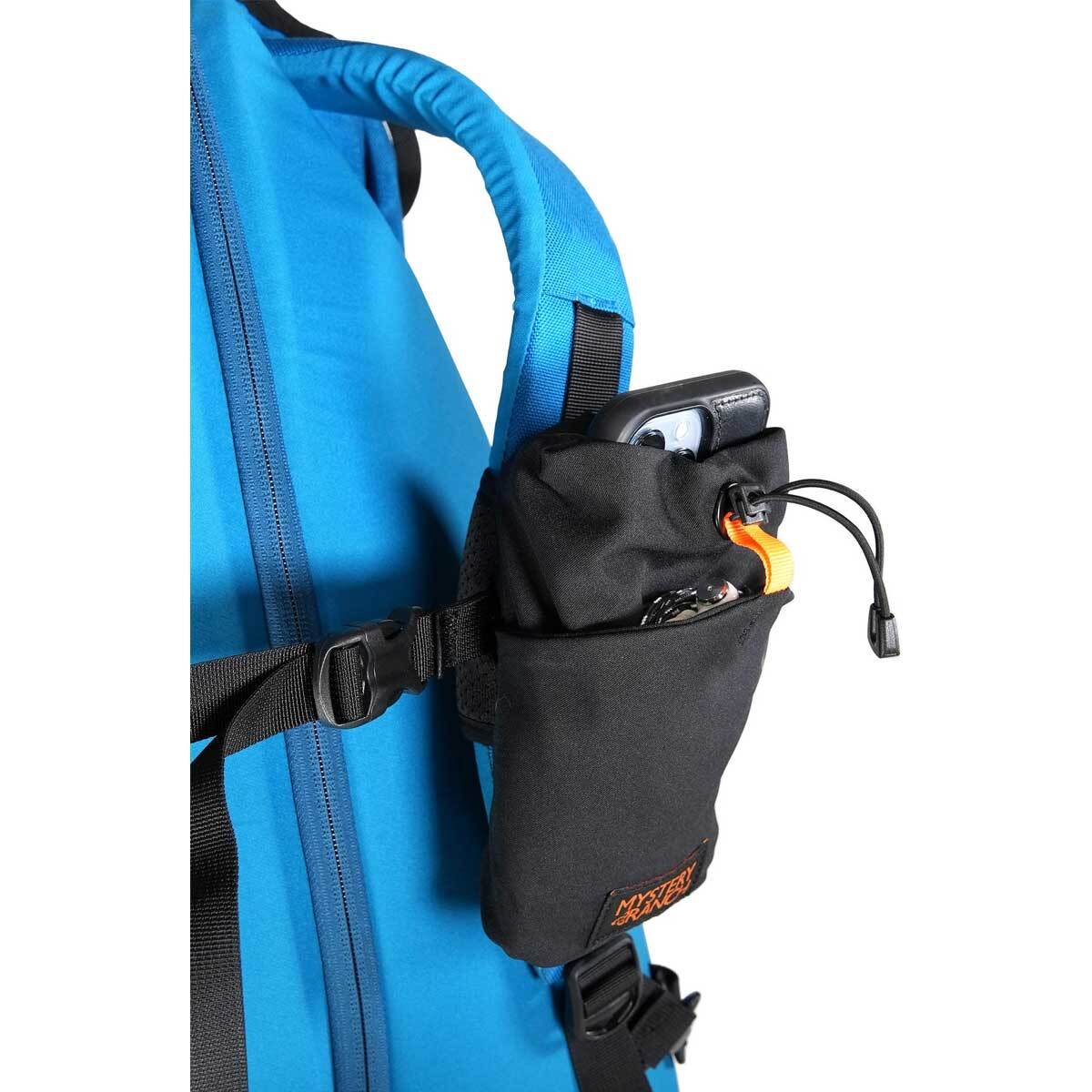 どのようなバックパックを背負って旅に出ても、使い勝手よく組み合わせて使えるマルチポケットです。ほとんどのバックパックのショルダーパッドに取り付けられ、サングラス、ヘッドフォン、コンパクトなウォーターボトル、携帯電話など、出し入れするアクセサリーを収納できるサイズに設計されています。野生動物を見たときにさっと写真を撮ったり、登山の最終行程でプレイリストをかけたり、ひとつあると何かと便利なポケットです。
