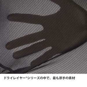 ※本商品(ドライレイヤー®ウォーム)は、軽さと機能を両立させるために繊細なニット生地を採用しています。繰り返しの摩擦や面ファスナー、枝などの引っかけ、硬い物との接触により、生地に損傷が生じる恐れがあります。また、ニット生地は繰り返しの使用や洗濯によって縮みやすい特性があり、特にタンブラー乾燥は大幅な縮みが発生するので絶対に避けて下さい。